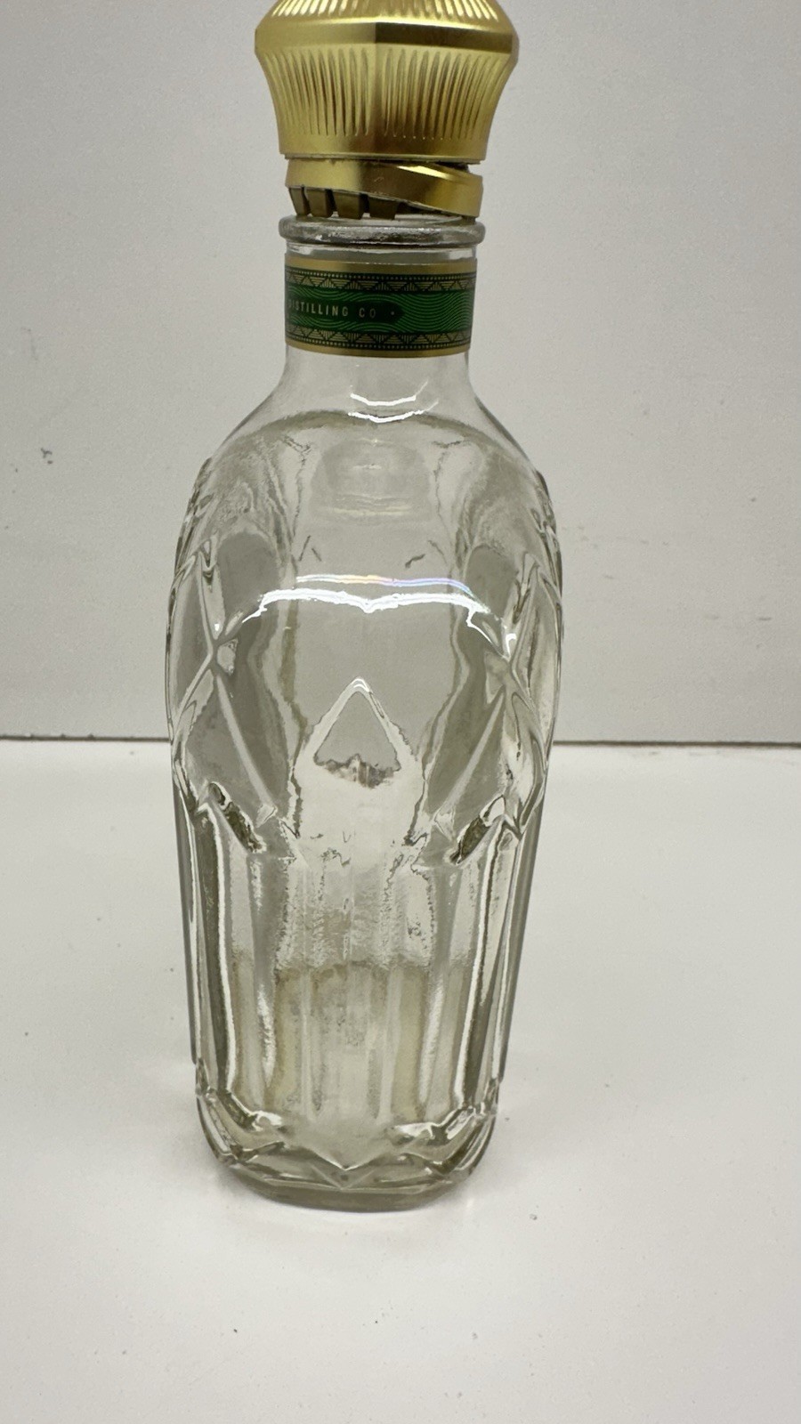 Ideal for displaying or as a centerpiece in your collection, this bottle is a testament to the timeless appeal and quality of CROWN ROYAL. The cap completes the look, making it a neat and stylish container for your favorite spirits or as a decorative item in any setting that appreciates the finer things.