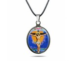 - CRUCIFIXION OF CHRIST NECKLACE Stainless Oval Pendant Catholic Saint Jesus Cross
