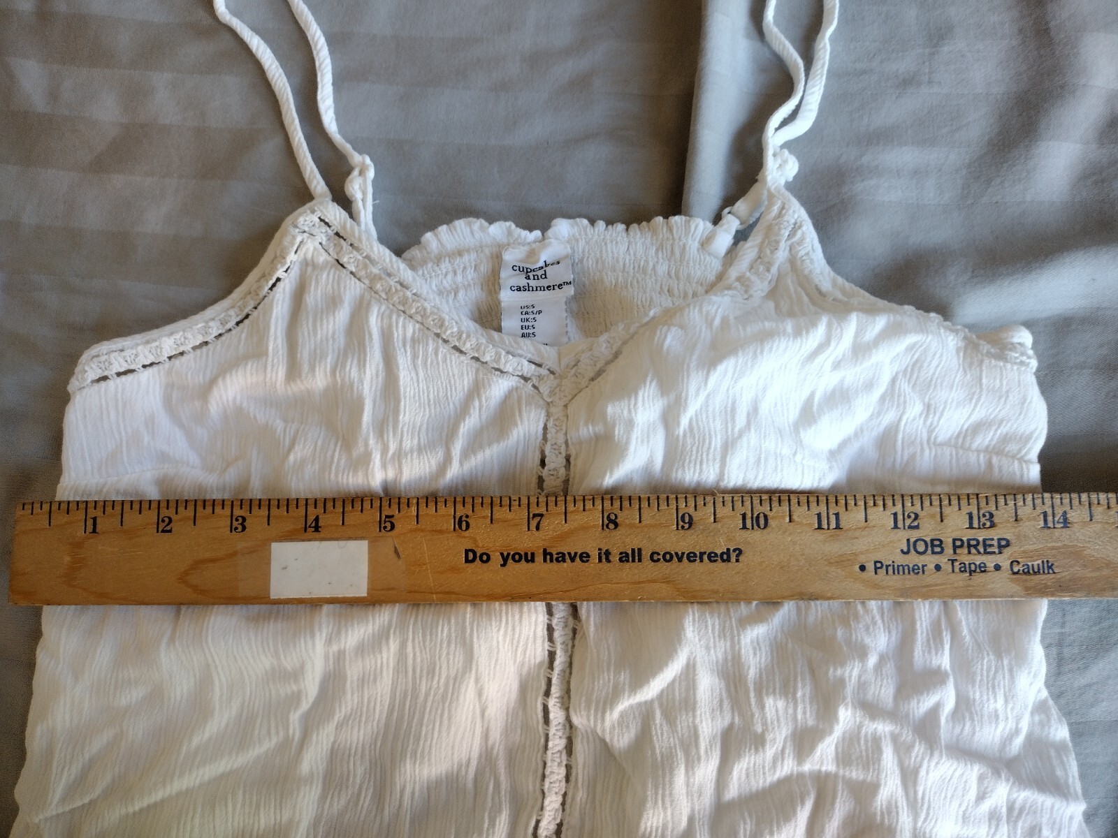 Elevate your casual wardrobe with this beautiful white blouse from Cupcakes Cashmere. Made with soft viscose material, this sleeveless blouse features a relaxed fit and a flattering V-neckline. The spaghetti straps add a touch of elegance, making it perfect for both casual and formal occasions.