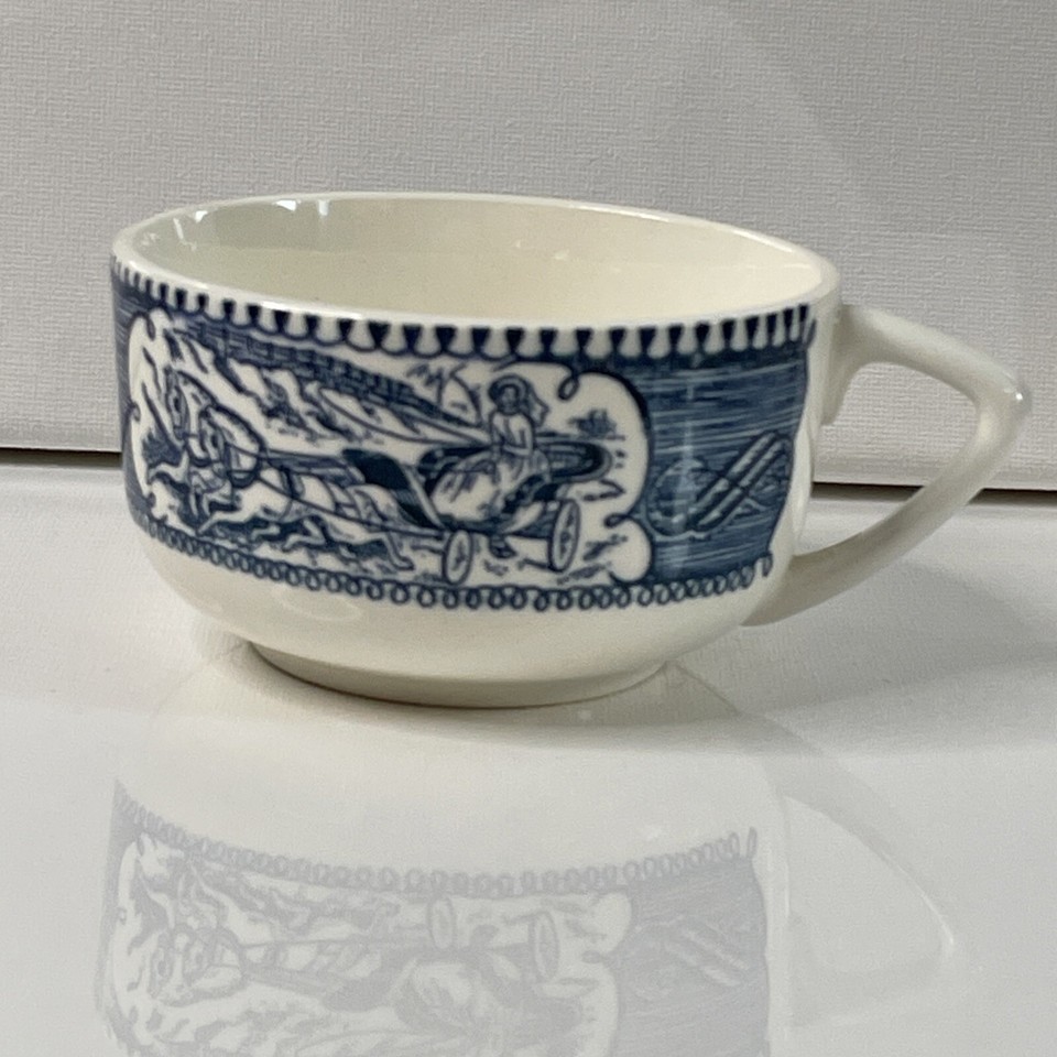 - Currier & Ives Vintage Blue Cup Horse and Carriage Coffee Mug 2.25”x3.75”