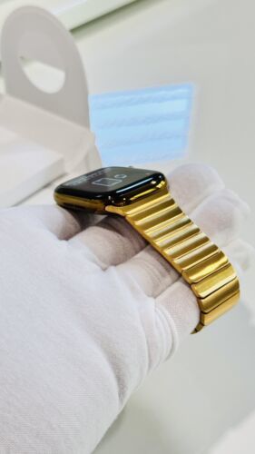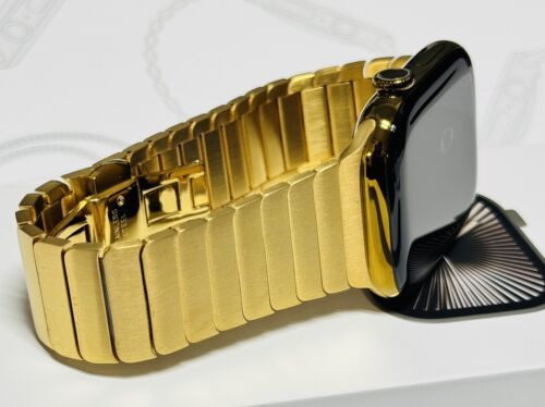 - Custom Anodized Bright Gold 42MM Apple Watch SERIES 10 Gold Plated Link Band