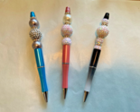 - Custom Beaded 3 Piece Pen Set w/Refills - Black Ink