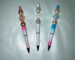 This custom beaded 3 piece pen set features black ink, perfect for writing with precision and elegance. Made from durable plastic material, these pens are both stylish and practical for everyday use. The set includes refills to ensure you never run out of ink, making it a convenient and high-quality addition to any collection of pens and writing instruments.