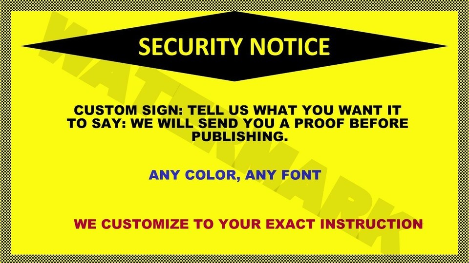I HAVE OVER 200 TEMPLATES FOR SAFETY AND SECURITY SIGNS ALL DESIGNED BY WOLFWOOD STUDIOS, WE CAN CUSTOMIZE ANY SIGN FOR YOU, OUR SERVICES ARE 10 TIMES BETTER THEN THE METAL OR PLASTIC SIGNS, THIS IS PRINTED ON HP ADVANCE PREMIUM PHOTO PAPER, SIMPLY FRAME YOUR SIGN AND YOU CAN HANG IT ANYWHERE , WE SELL FRAMES AS WELL AND WILL FRAME IT FOR YOU . THESE ALSO GO WELL IN WORK AREAS , BATHROOMS , HALLWAYS, OR ANYWHERE YOU WANT YOUR SIGN TO BE SEEN , WE USE HIGH DEFINTION COLORS IN ALL OUR SIGNS . WE DISCOUNT LARGE ORDERS , SIMPLY LET US KNOW WHAT YOU NEED AND WE WILL TAKE CARE OF ALL YOUR SAFETY SIGN NEEDS. PLEASE KNOW THAT THIS IS A HIGH DEFINITION PHOTO.