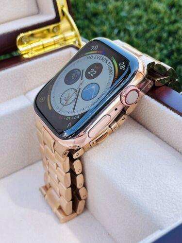 - Custom Rose Gold Plated 46MM Apple Watch SERIES 10 Rose Gold Link Band LTE
