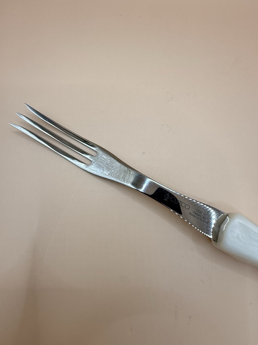 - Cutco #1726 KI 11" Meat Turning 3 Tine Fork with White Pearl Handle Made in USA