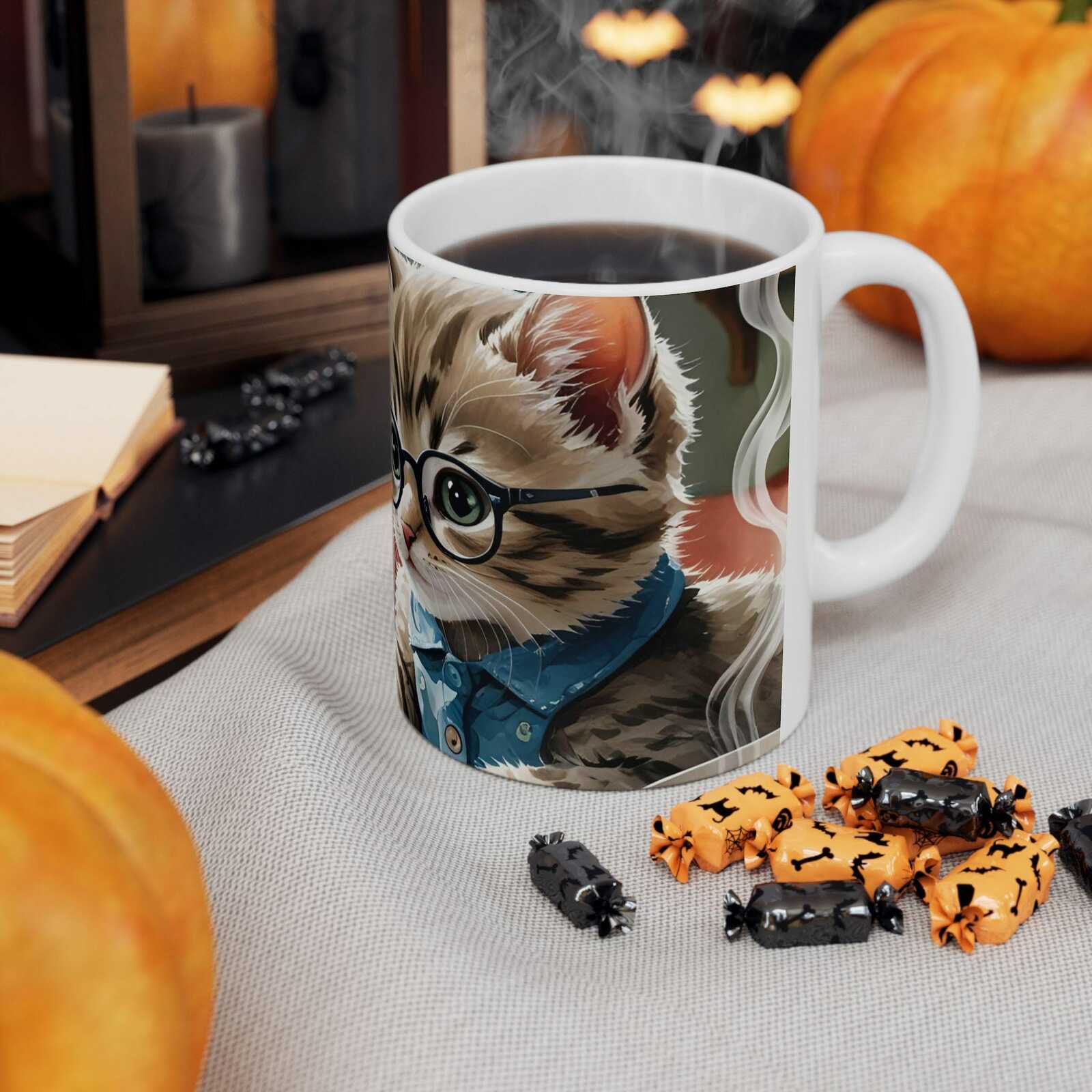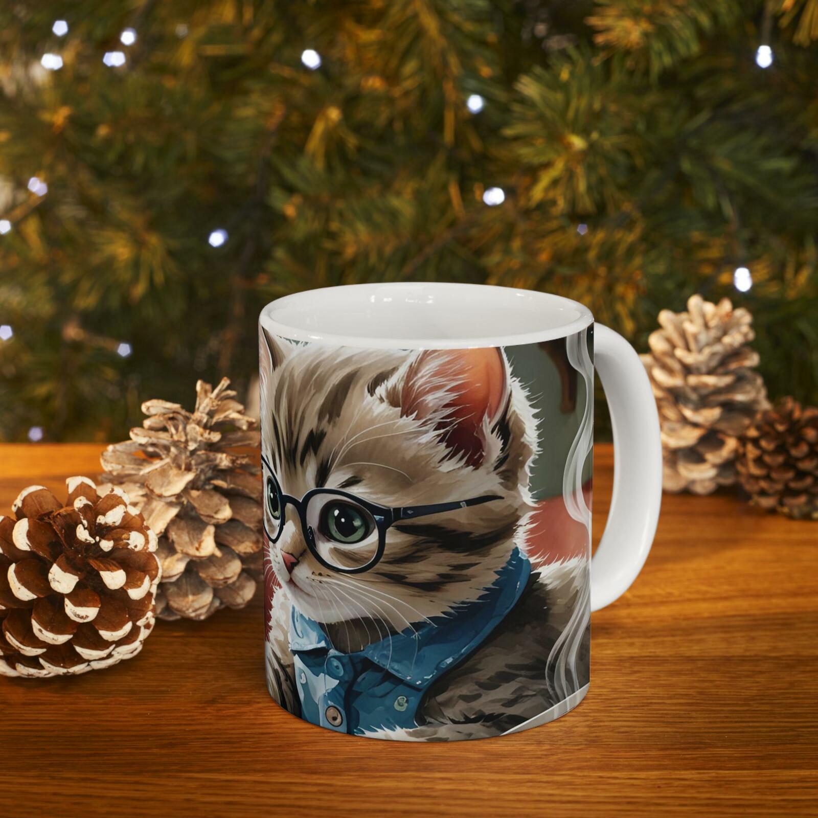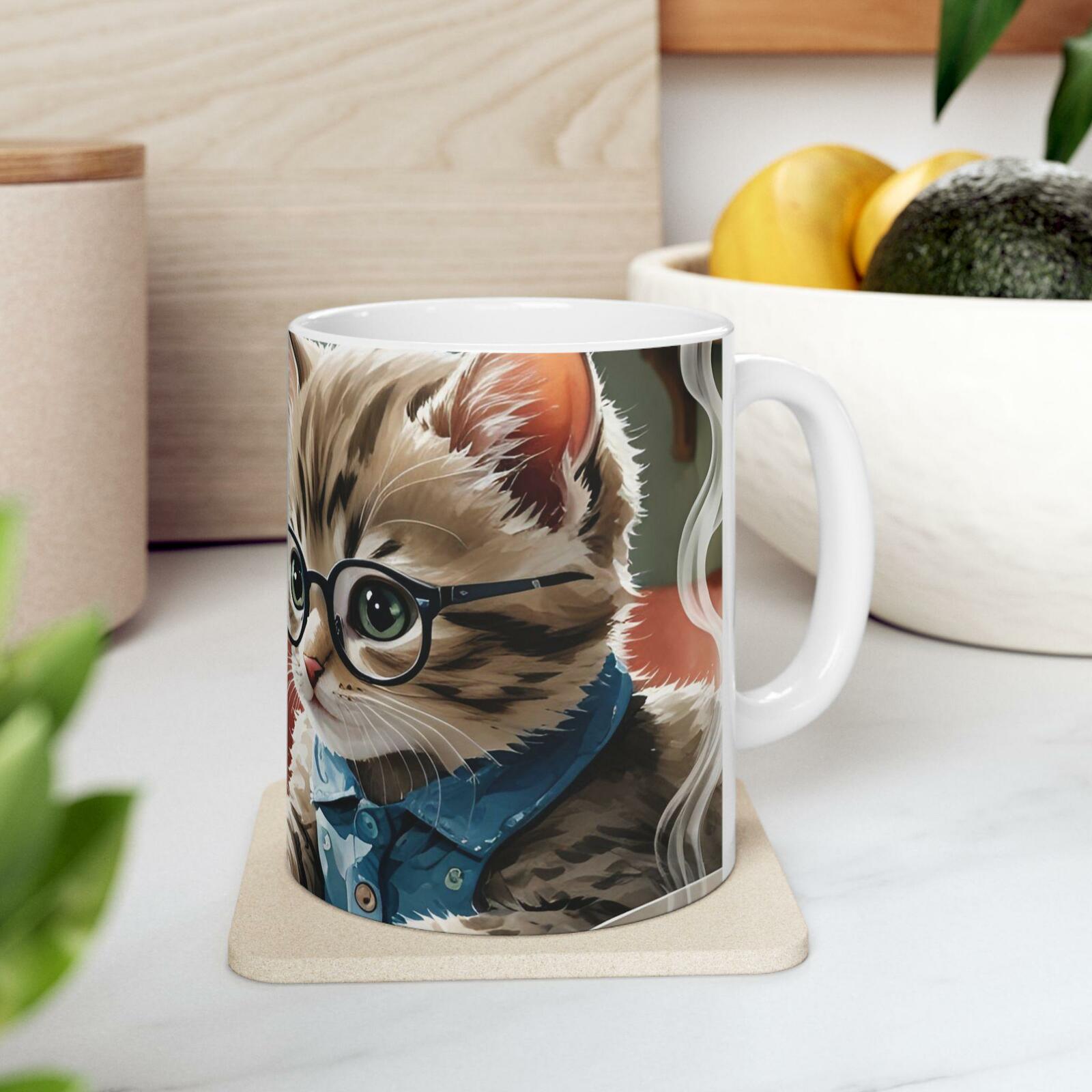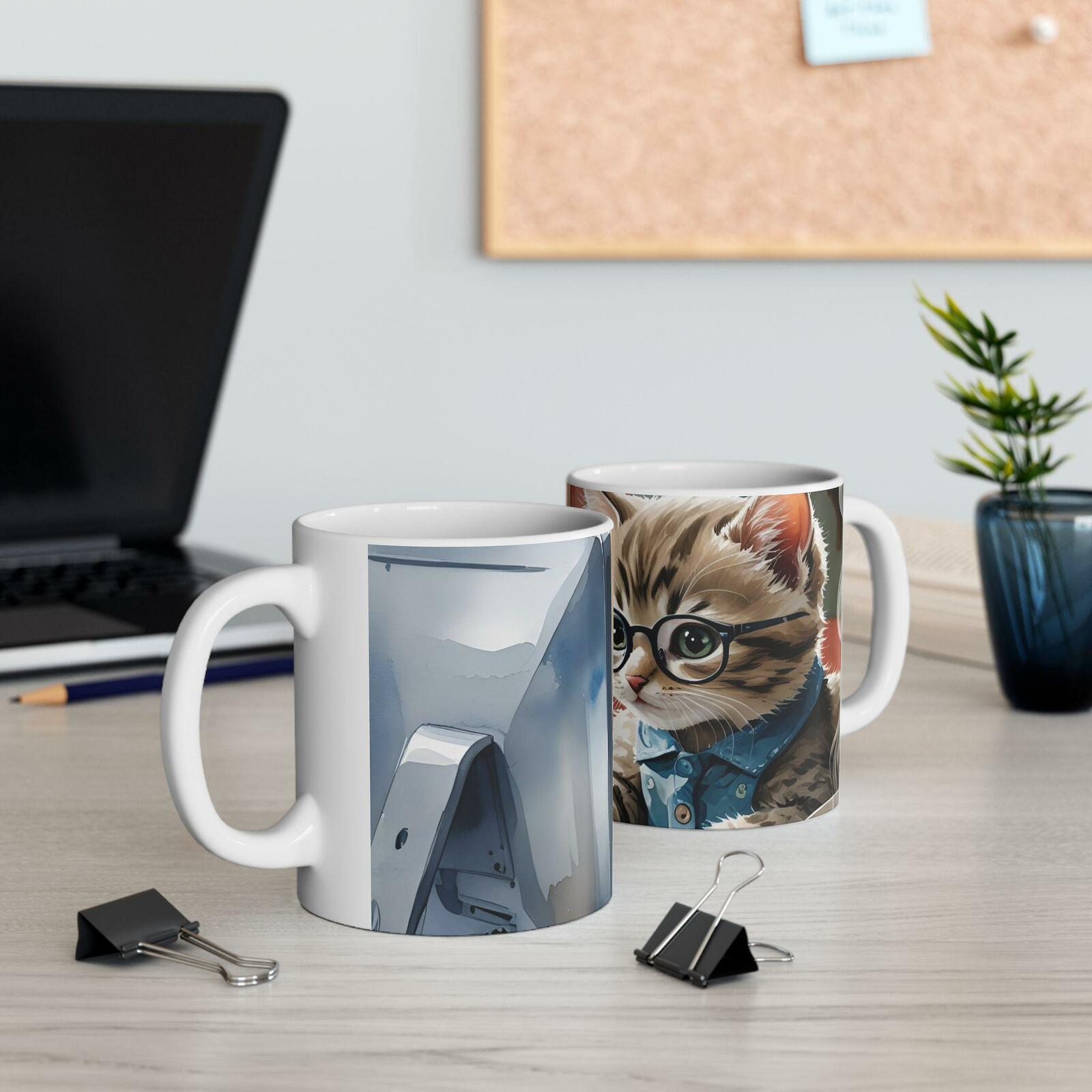 - Cute Cat Lover's Ceramic Mug, Adorable Kitten Design, Gift for Cat Owners, Offic