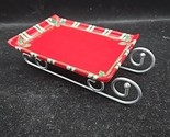 - Cute Christmas Sleigh Ceramic Cheese Tray Ganz Red Green Holly