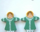 - Cute Irish Lass Wood DOLL GREEN DRESS BUTTON STUD EARRINGS St Patrick Jewelry