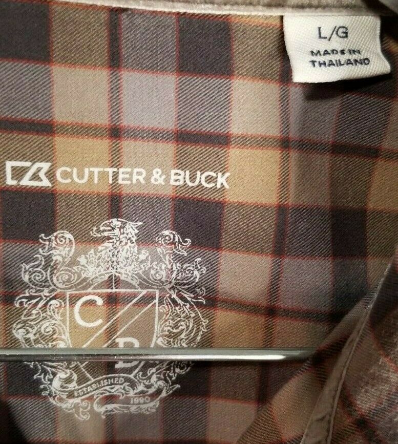 Like New! Cutter and Buck Brown and Blue Button Down Long Sleeve Shirt size Large. Condition is Pre-owned. Shipped with USPS First Class Package. bin2
