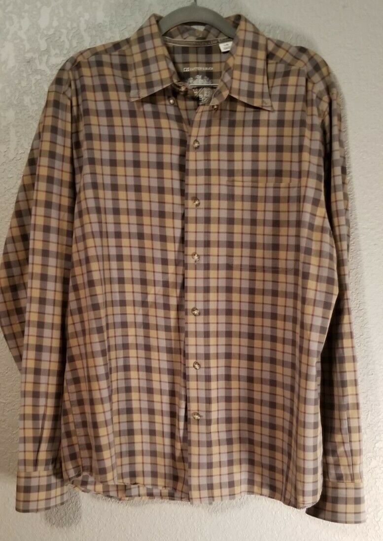Cutter and Buck Brown and Blue Button Down Long Sleeve Shirt size Large