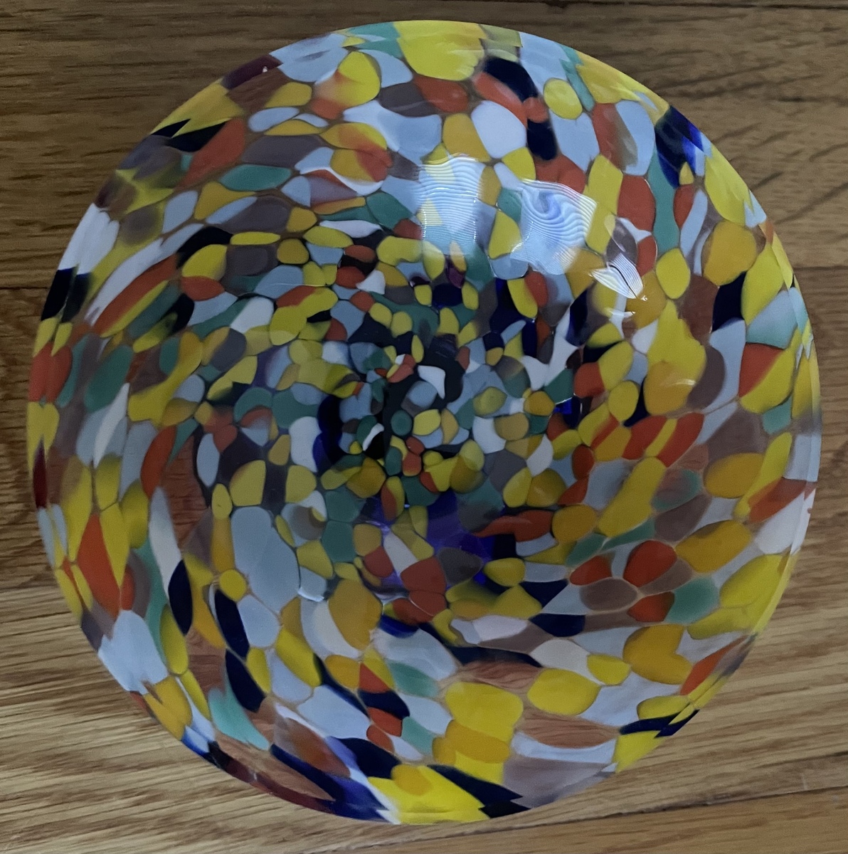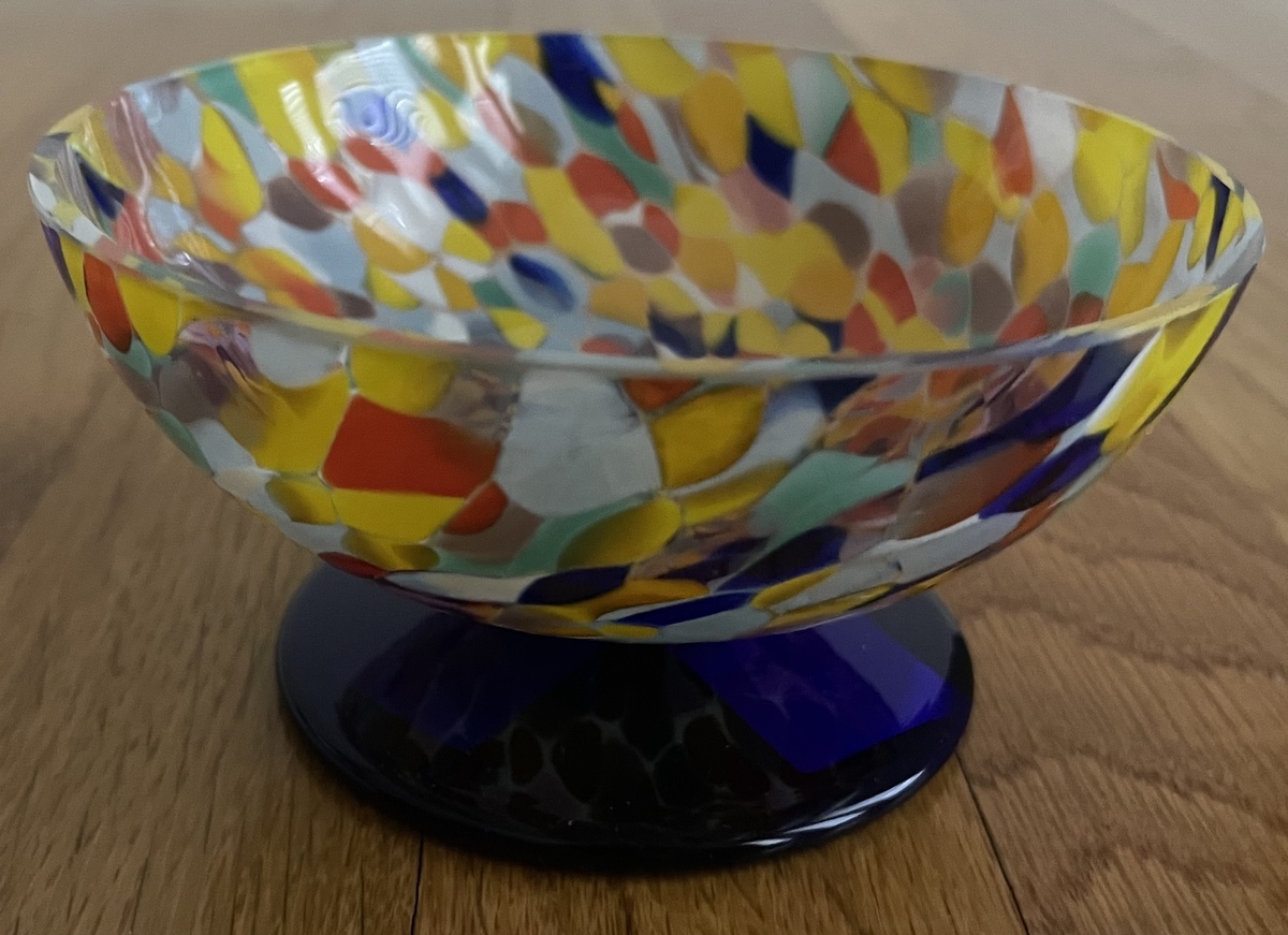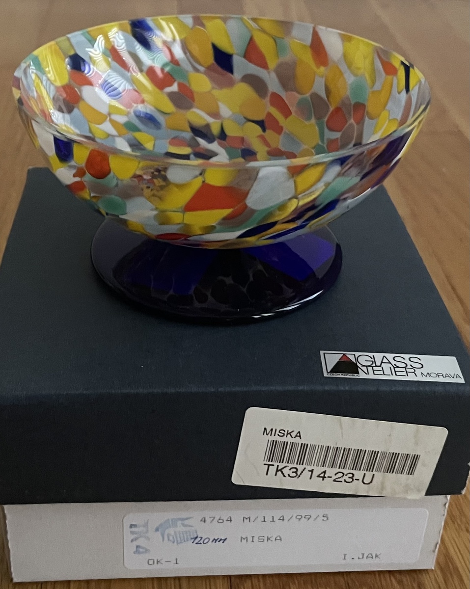 Czech Art Glass Candy Dish with Box 4 5/8" diameter x 2 3/8" tall