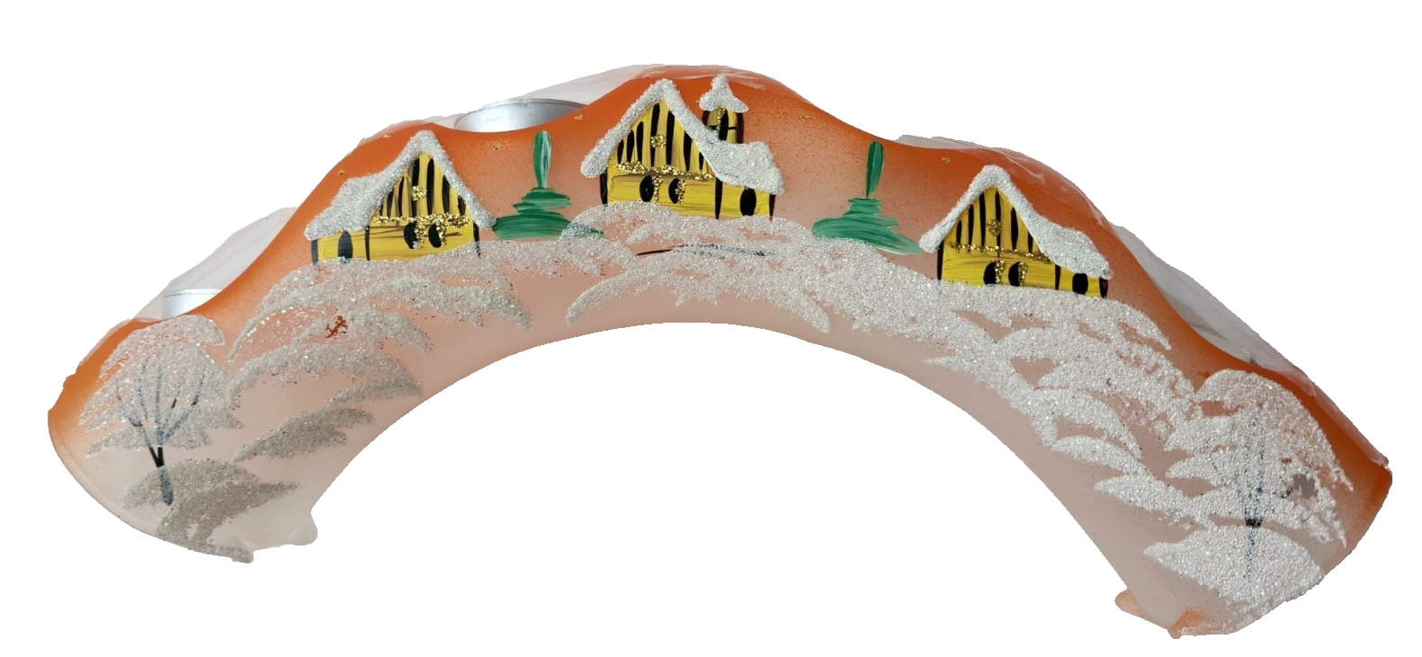 - Czech Glass Christmas Candle Holder Tea Light winter Scene Handmade
