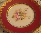 D C France Bernardeaud Higgins Seller plate red gold and flowers, c1920s, 6 1/2" diameter, very good condition, some light surface scratches commensurate with age A[120K]