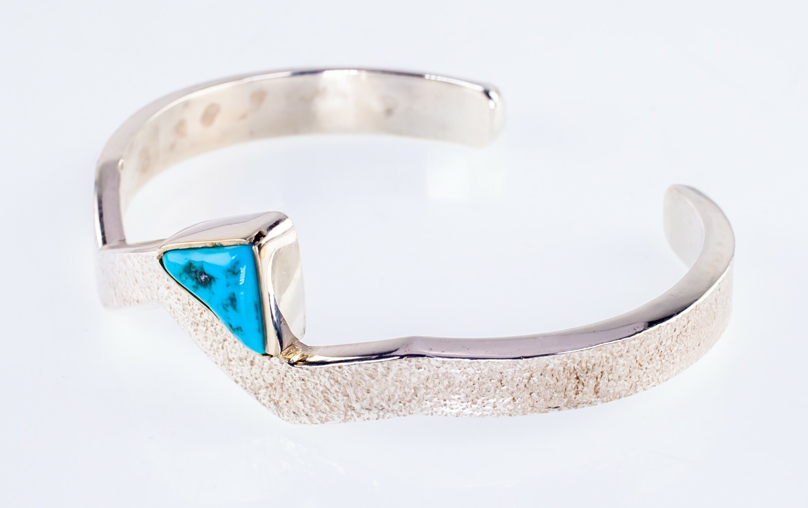 Features Zig Zag Cuff with a Triangle shaped Turquoise that's Bezel set All shipments include insurance and delivery confirmation or signature confirmation. Local Pick-up is available in our showroom. All international packages will have the required customs declaration and value of order. Your continuing satisfaction is very important to us. We offer a 30 day money back return policy. If you are unhappy with your purchase for any reason, please notify us so that we can begin the returns process. All items for sale are available for viewing at our Southern California showroom. We would like to thank all of our loyal customers for their continued support. If you have any questions, comments or concerns, please click "Ask a question" below, and we will respond as soon as possible. Thank y