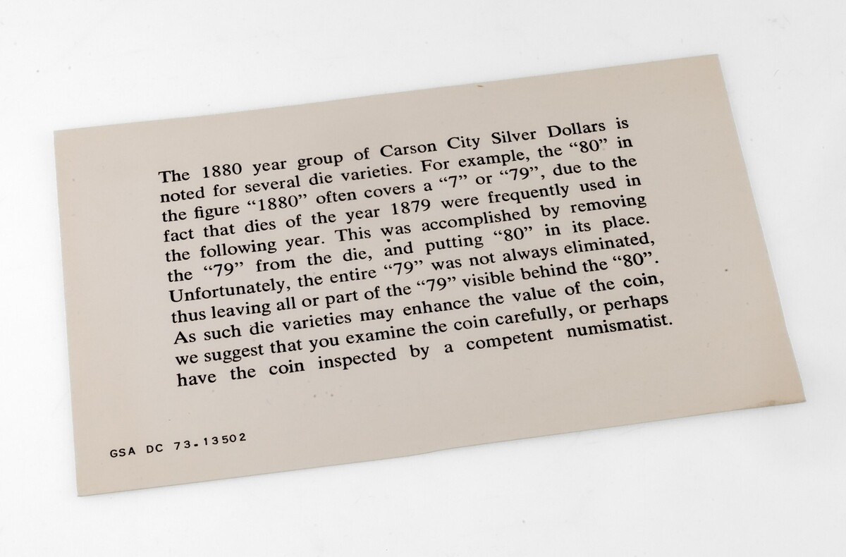 - Dólar Morgan 1880-CC $1 GSA Con Caja Y CoA Fecha Clave!