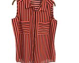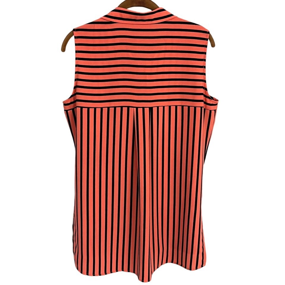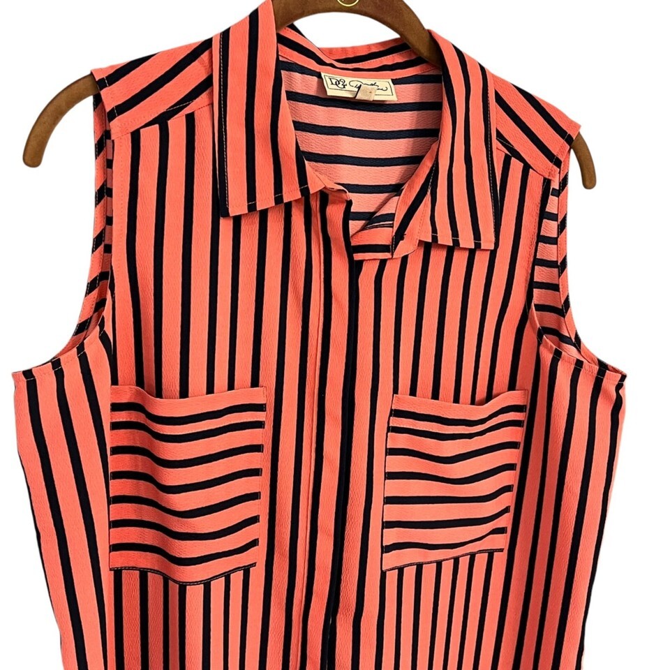 D2G Womens Sleeveless Striped Blouse M Pink & Black Polyester Pocket Detail