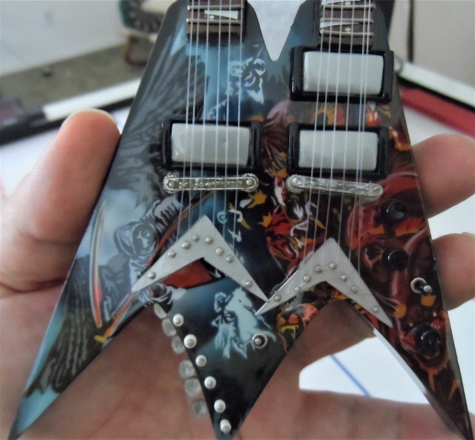 - DAVE MUSTAINE - Dean V Double Neck Diadem Signature 1:4 Scale Replica Guitar~New