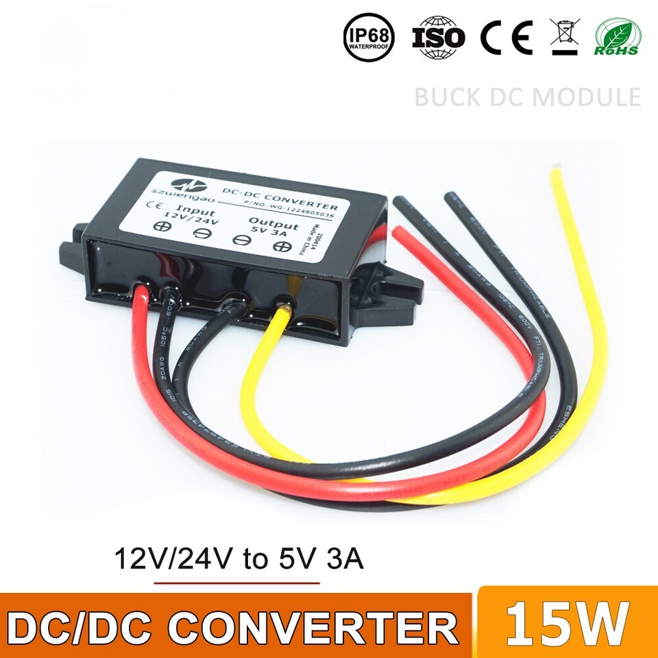 - DC 12V/24V to 5V 3A/5A/10A Step Down Power Converter Buck 15W 50W LED Cars Boats