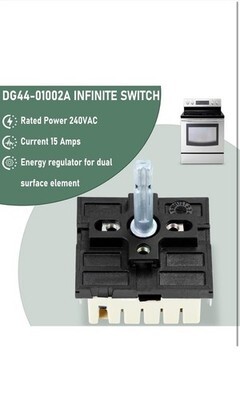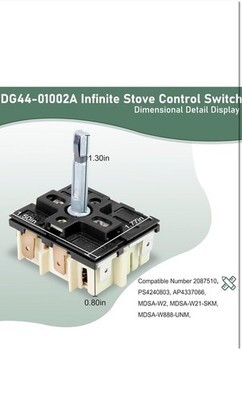 The DG44-01002A Samsung Energy Regulator Infinite Switch MDSA-W21-SKM MDSA-W888-UNM is a high-quality replacement part for Samsung cooking appliances. This built-in/ integrated switch is designed for electric cooking appliances and comes with a 3-year manufacturer warranty. The multicolor switch is compatible with various Samsung models and is made of durable plastic material. It suitable for use in convection ovens/stoves, conventional ovens/stoves, and steam ovens, providing convenience and flexibility for your cooking needs.