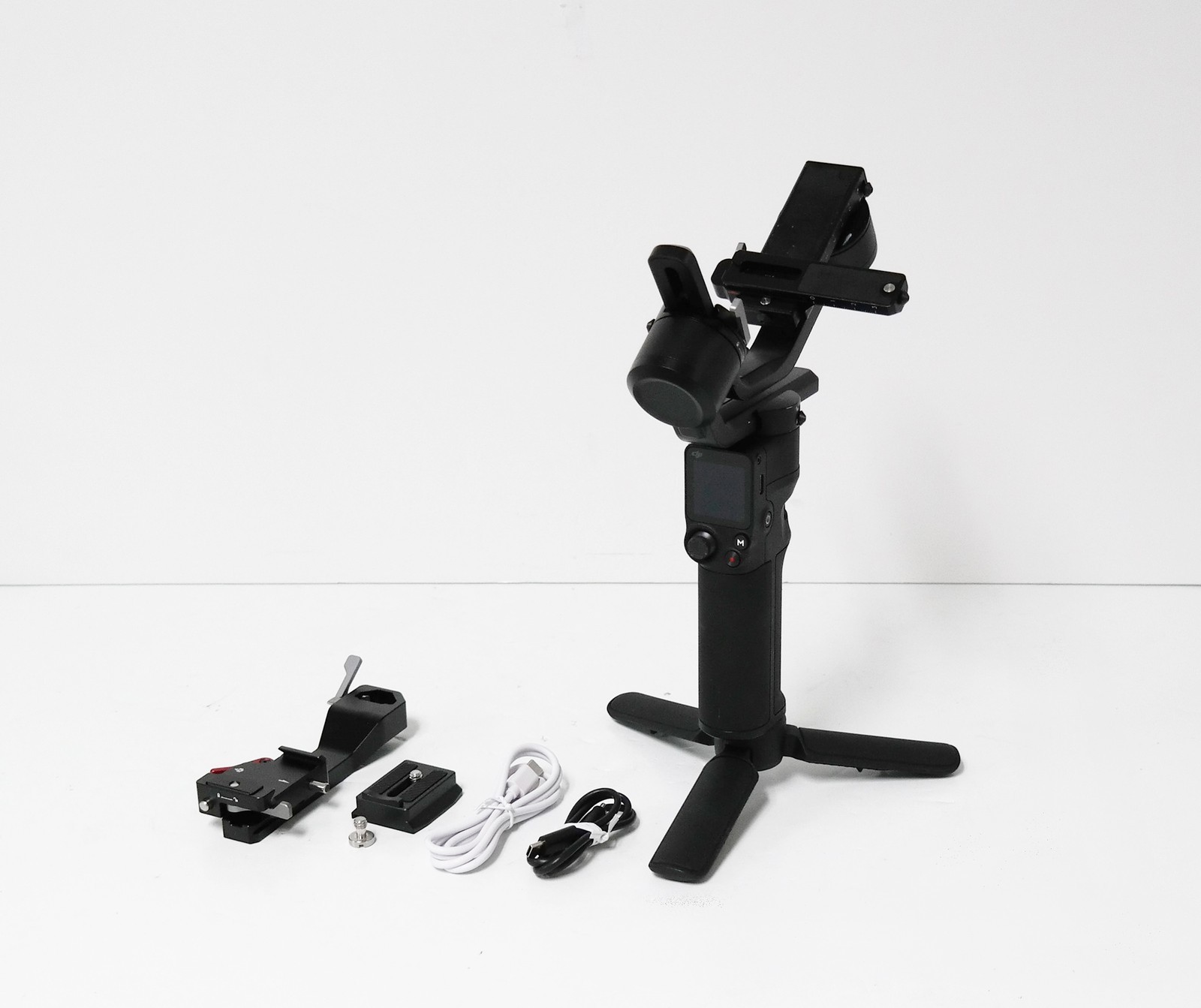 Description: Includes Gimbal, USB-C To USB-A Charging Cable (40 cm), USB -C to USB -C Camera Control Cable, RS Mini Quick-Release Plate, RS Mini Tripod, Screw Kit. Scratched.