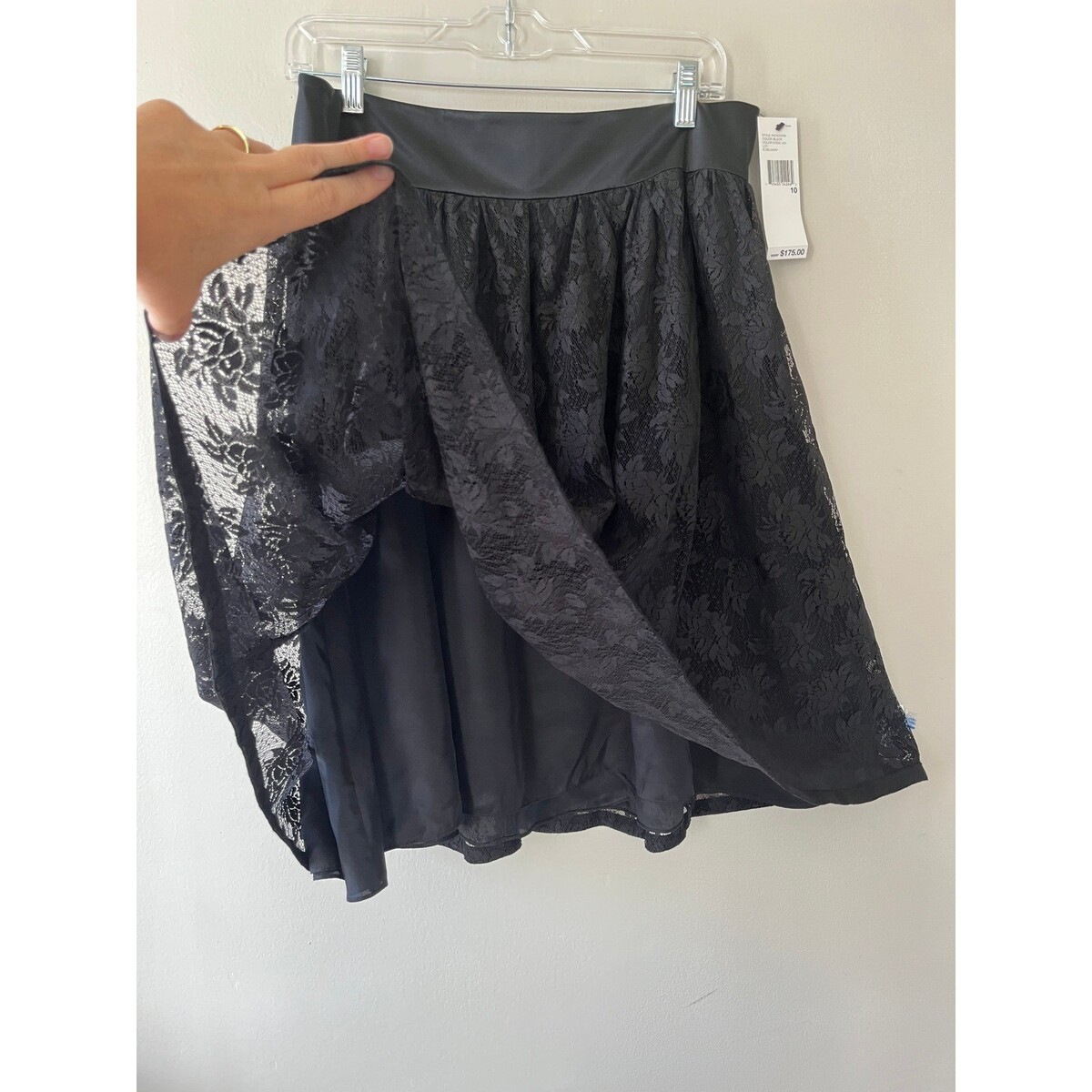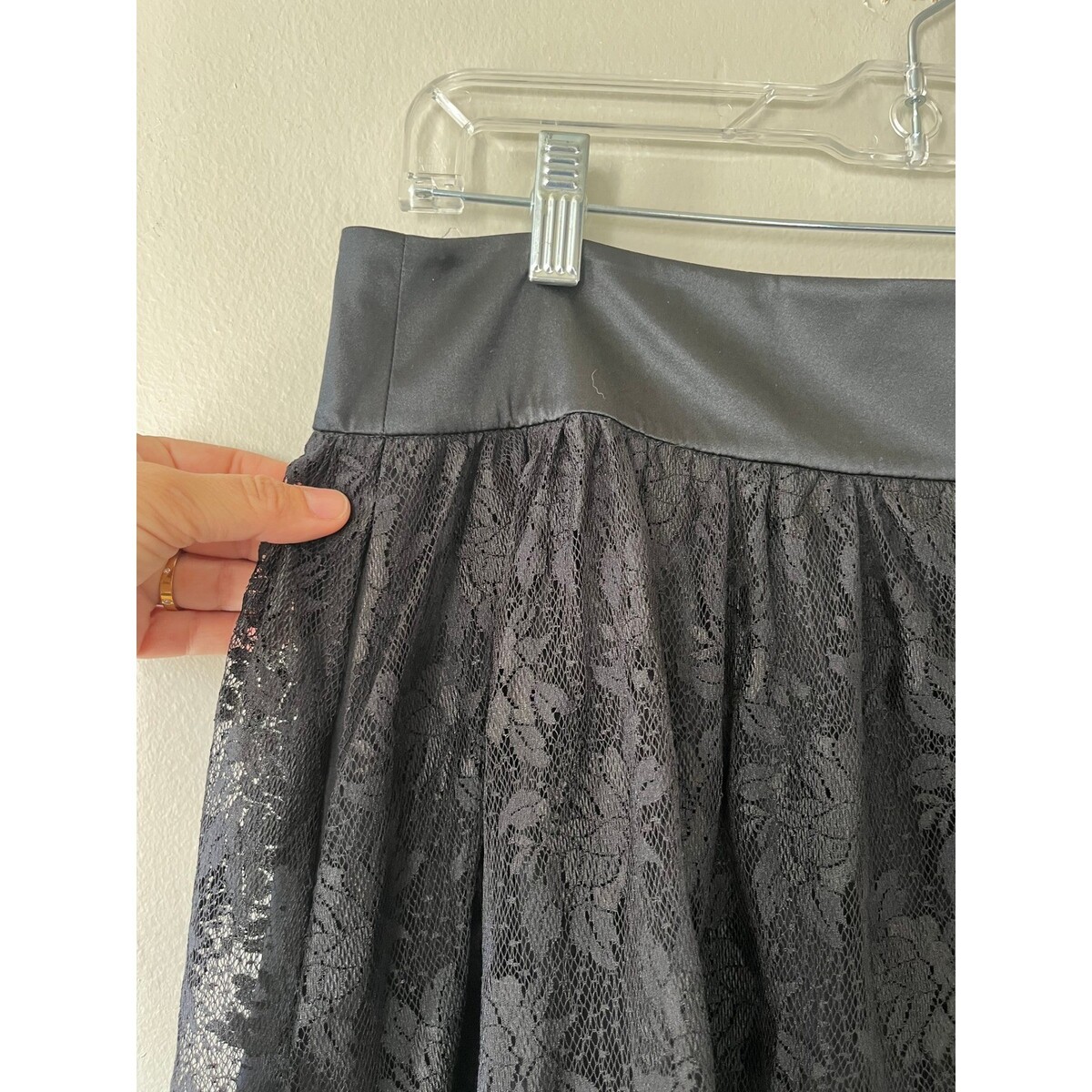 - DKNY Sz 10 Black Lace Midi Skirt Satin Waist Zipper Closure