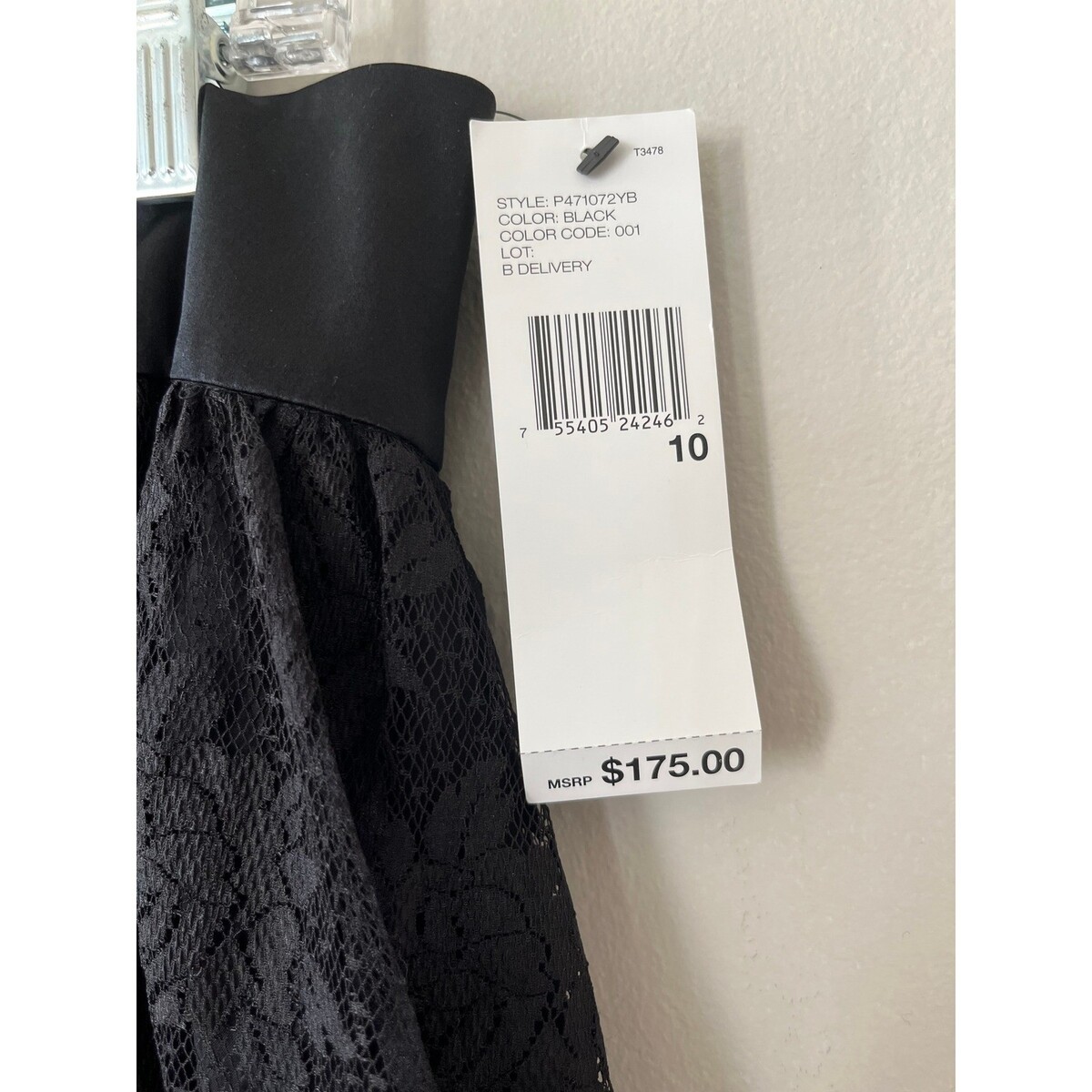 DKNY Sz 10 Black Lace Midi Skirt Satin Waist Zipper Closure