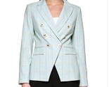 DKNY women's double-breasted mint green blazer in a windowpane pattern. Features double-breasted button-front closures Shoulder pads Side flap pockets