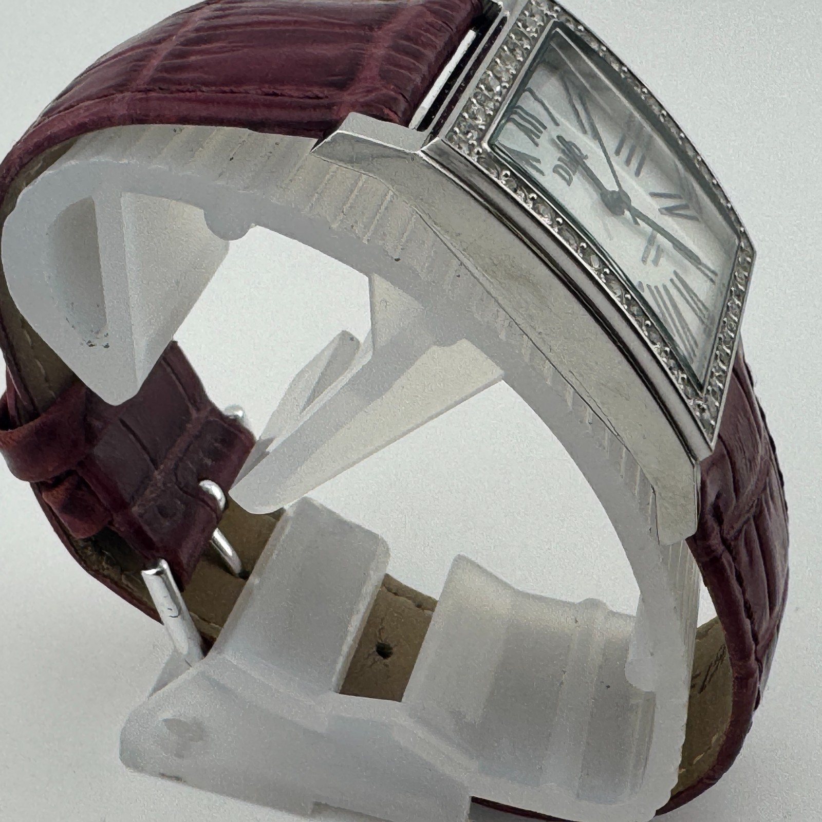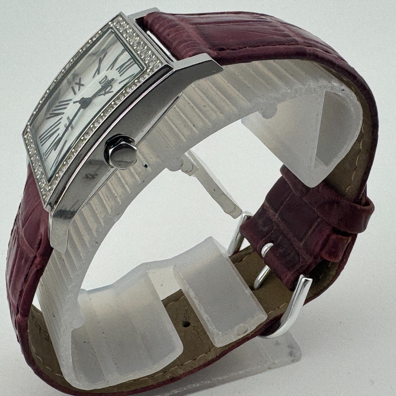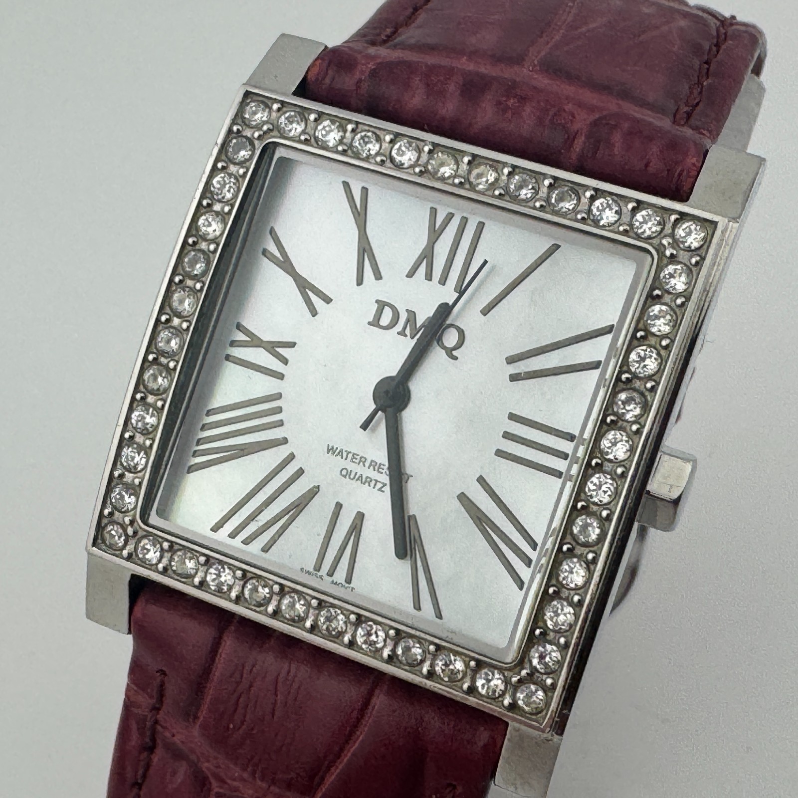 - DMQ Swiss Quartz Watch Women Silver CZ Stone Square Leather Analog New Battery