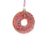 - DONUT ORNAMENT 4" Glass Pink Frosted Doughnut with Bead Sprinkles Christmas Tree