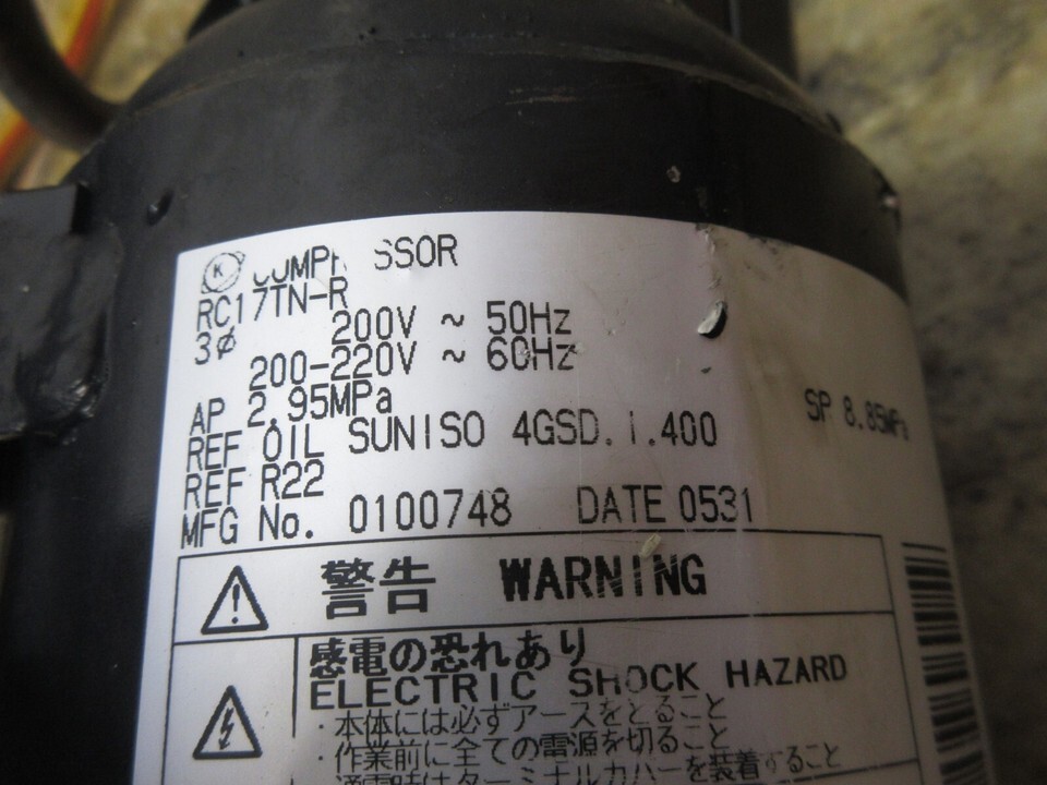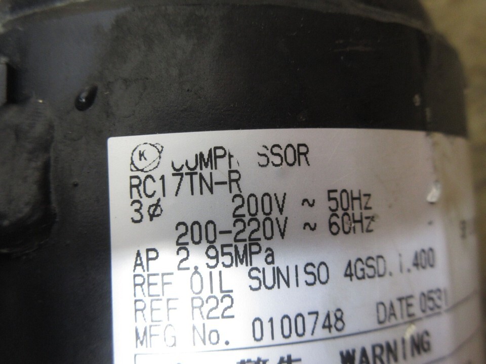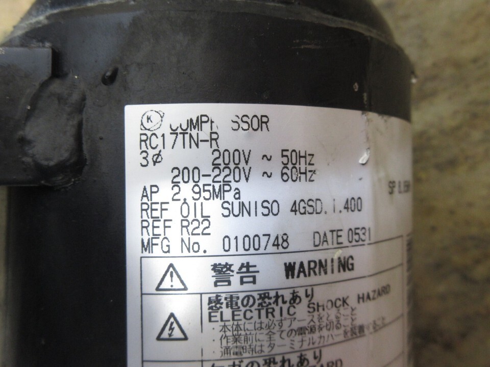 - DAIKIN COMPRESSOR RC17TN-R 200V 50/60HZ AP 2.95MPA 0100748 SP 8.85MPA