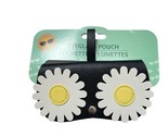Daisy Eyeglass Sunglass Pouch Black Vinyl White Flower Hanging Loop Snap Closure