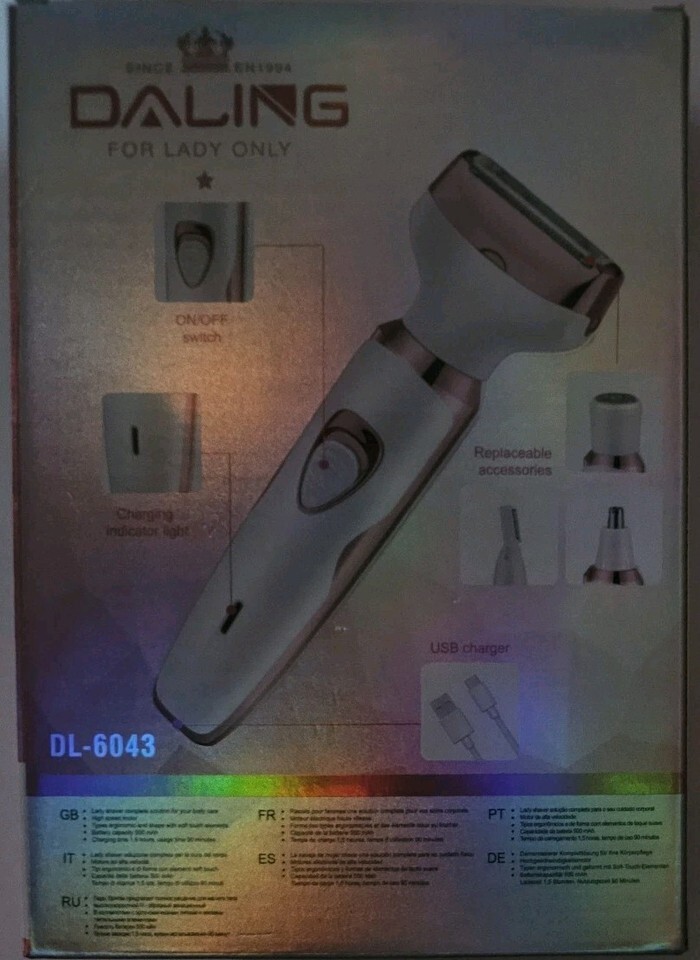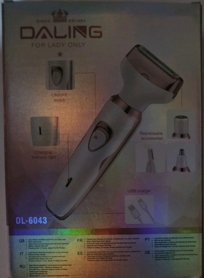 You are Buying a Brand New And Factory Sealed Daling Multifunctional Electric Razor For women's, 4-in-1 Beard Trimmer, Ear Nose Trimmer, women's Grooming Kit, Cordless Rechargeable..... Machine With 4 Functions: Shaving, Trimming Hair Trimming Nose Hair