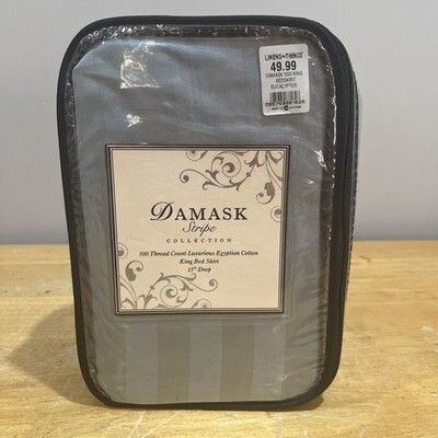 - Damask Stripe Linens N Things Eucalyptus Green 500 TC King Bed Skirt 15" Drop