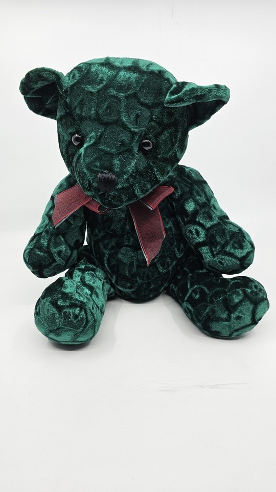 - Dan Dee Limited Edition Teddy Bear Dark Green Metallic Emerald w/Bow Sitting 10"