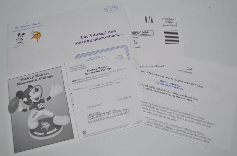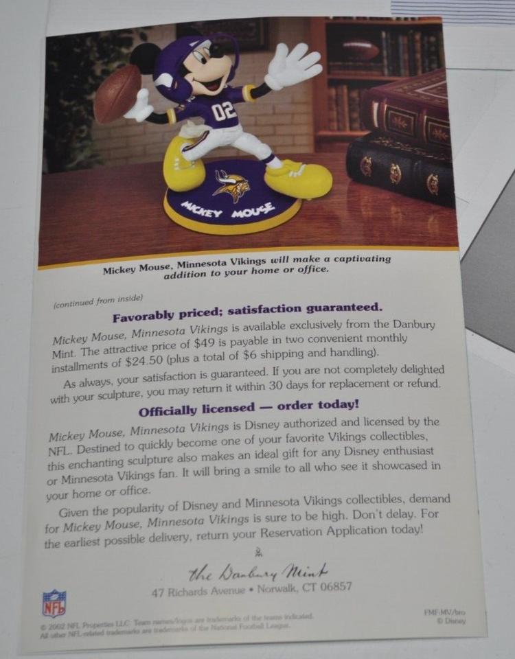 - Danbury Mint Minnesota Vikings Mickey Mouse Quarterback 2002 Brochure