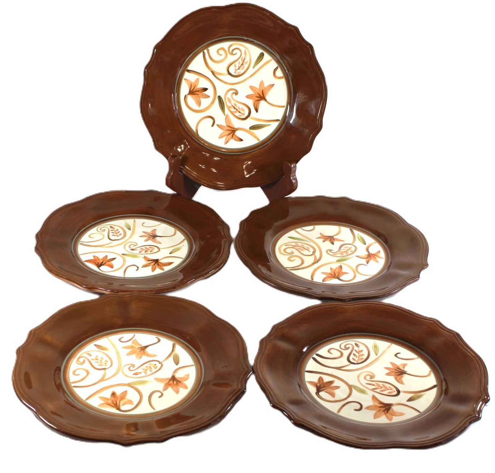 Daniel Cremeiux St Remy Brown Print 13 pc Dinnerware set New with Tags Rustic Brown.