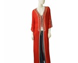 Dar Mode Red Ethnic Embroidered Cotton Long Caftan Cardi Cardigan Size 2, New