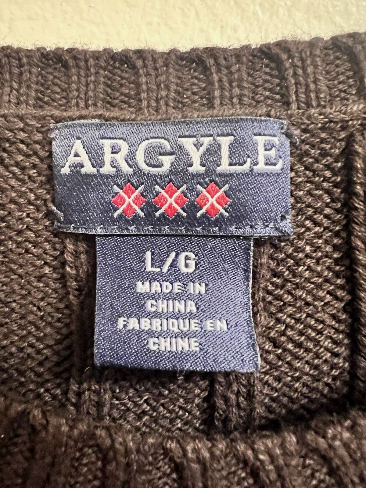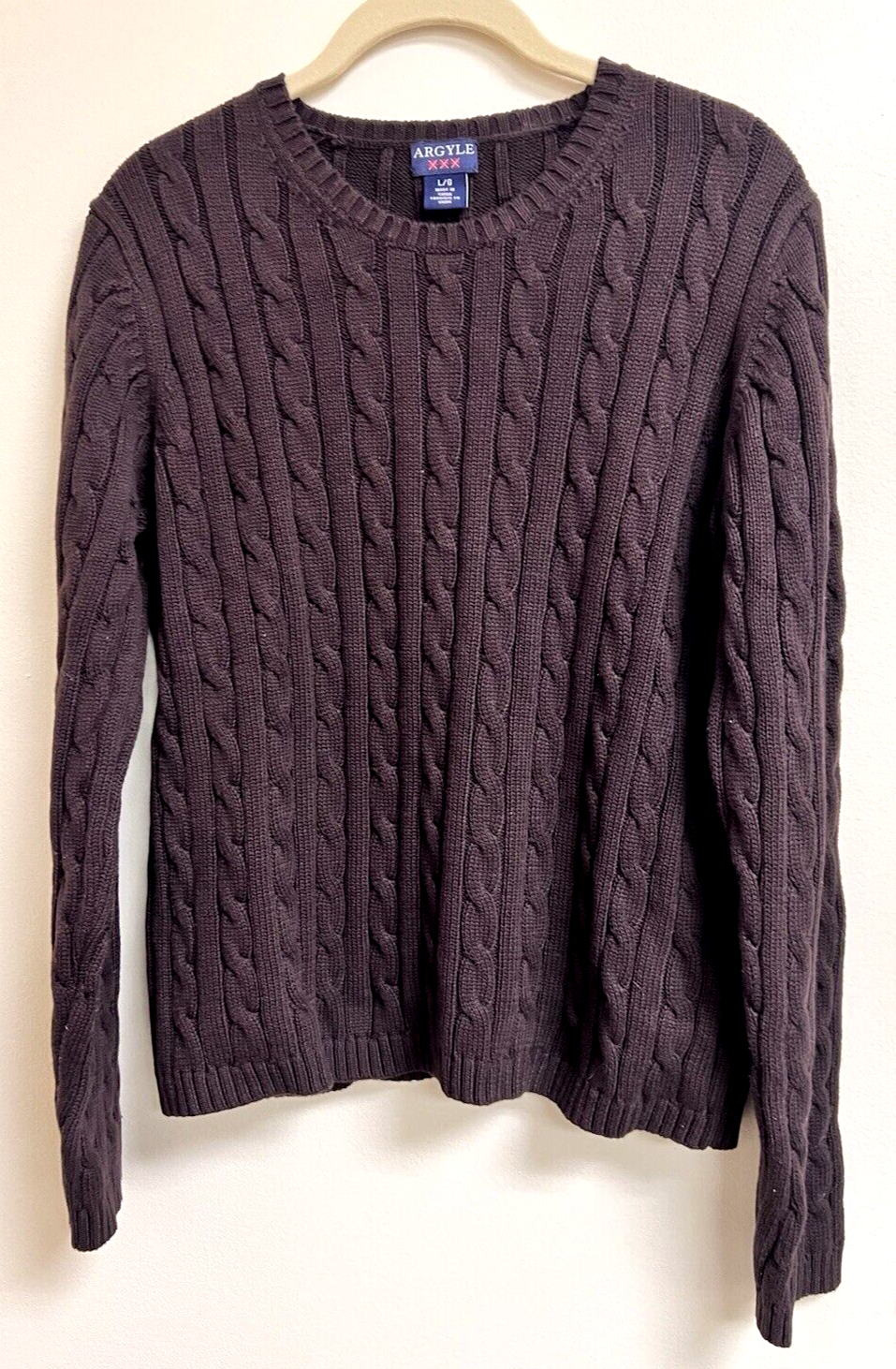 - Dark Chocolate Brown Argyle Women's SZ Lrg Sweater Great Shape Cable Knit