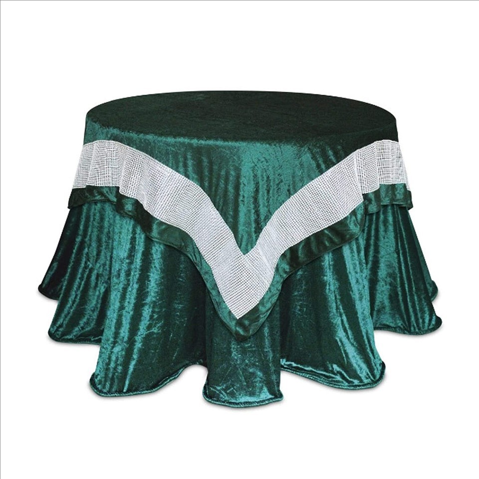 - Dark Green Velour Table Topper w/Rhinestone Band 54" Square SALE Make an Offer
