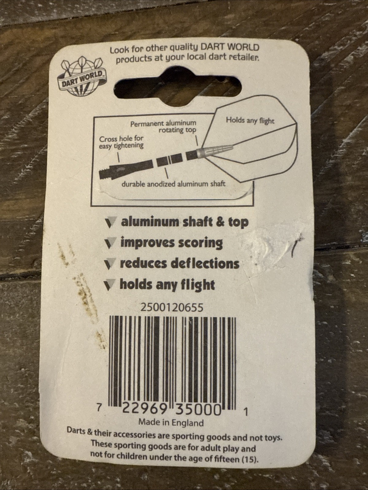 The Dark World Top Spin Spinning Shaft by Dart World is a high-quality accessory for darts. This spinning shaft allows for increased control and precision while throwing darts, making it an essential tool for competitive players. With its sleek design and brand reputation, this product is sure to enhance any darts player's performance.