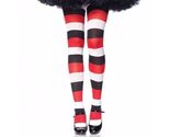 Striped tights or pantyhose. The hose has wider red, black and white stripes. Adult Standard One Size Fits Most. (Regular OSFM hosiery usually fits 90 to 160 lbs.)