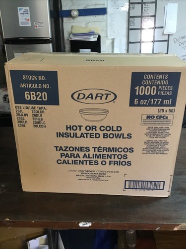 Dart 6B20 6 Oz Hot Or Cold Insulated Bowls- 1000 Per Case. Condition is New. Shipped with Economy Shipping.