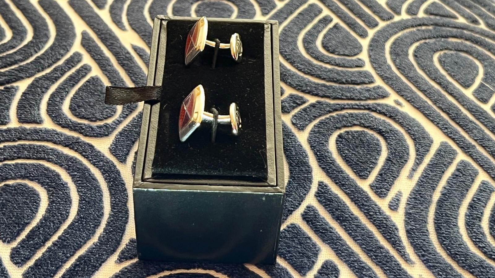 ONE PAIR DAVID DONAHUE CUFFLINKS, MARKED 925. THE BOX IS INCLUDED, BUT IS NOT THE ORIGINAL DAVID DONAHUE BOX.