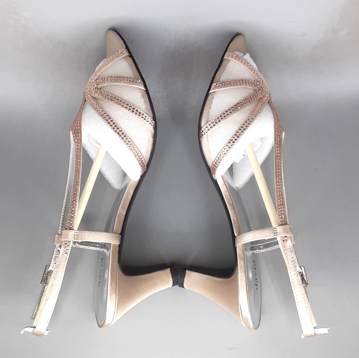 David Tate Refined Reveal Sandals Women's 7.5 M Beige Champagne Slingback Satin