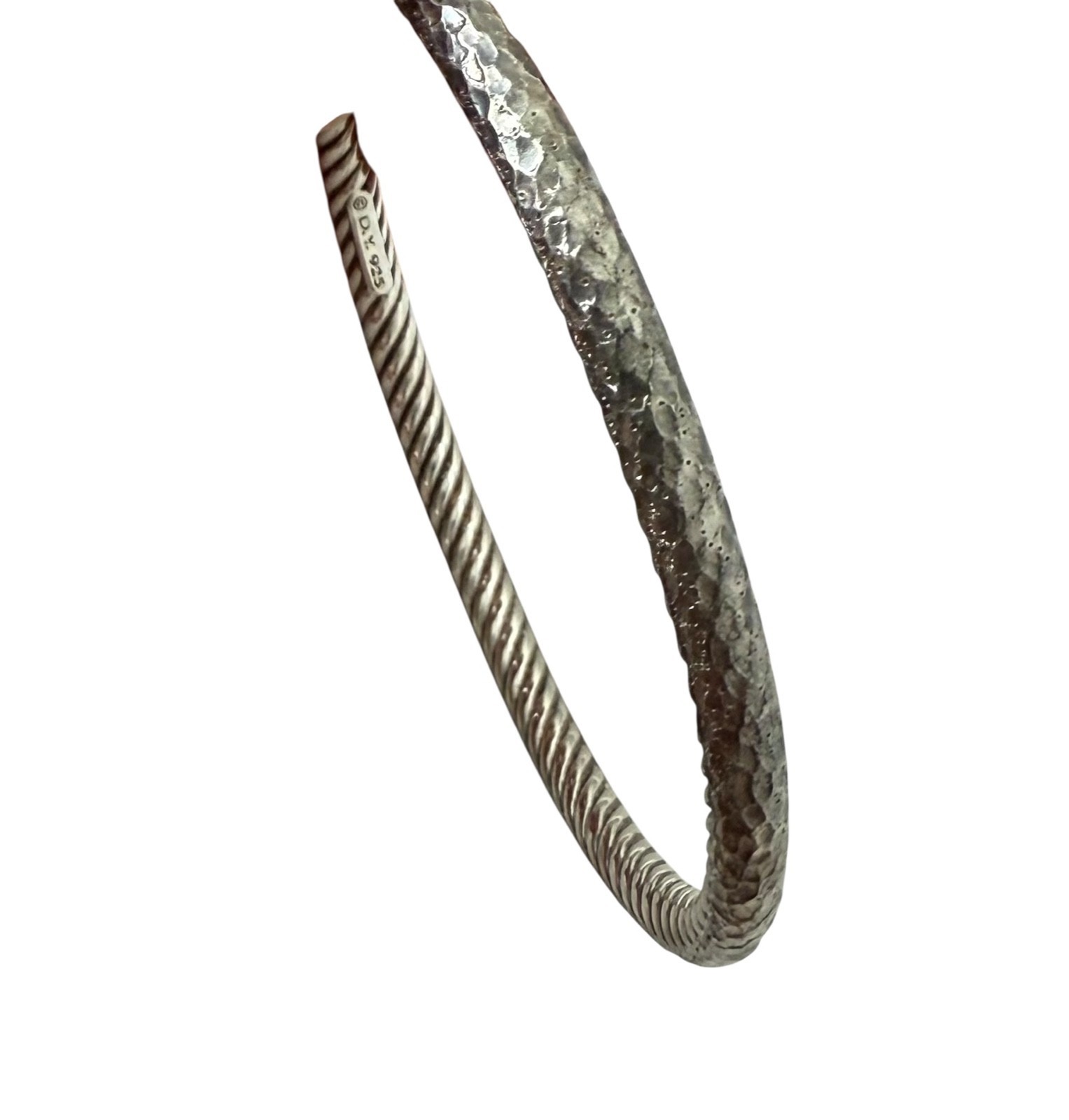 - David Yurman 925 Silver Cable 4mm Hammered Bangle Bracelet