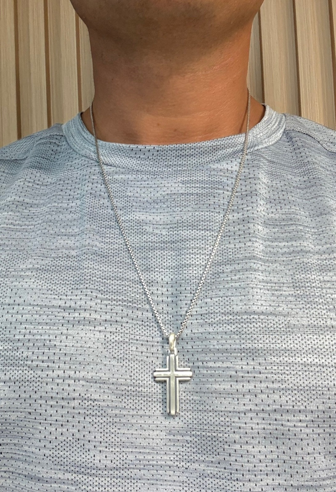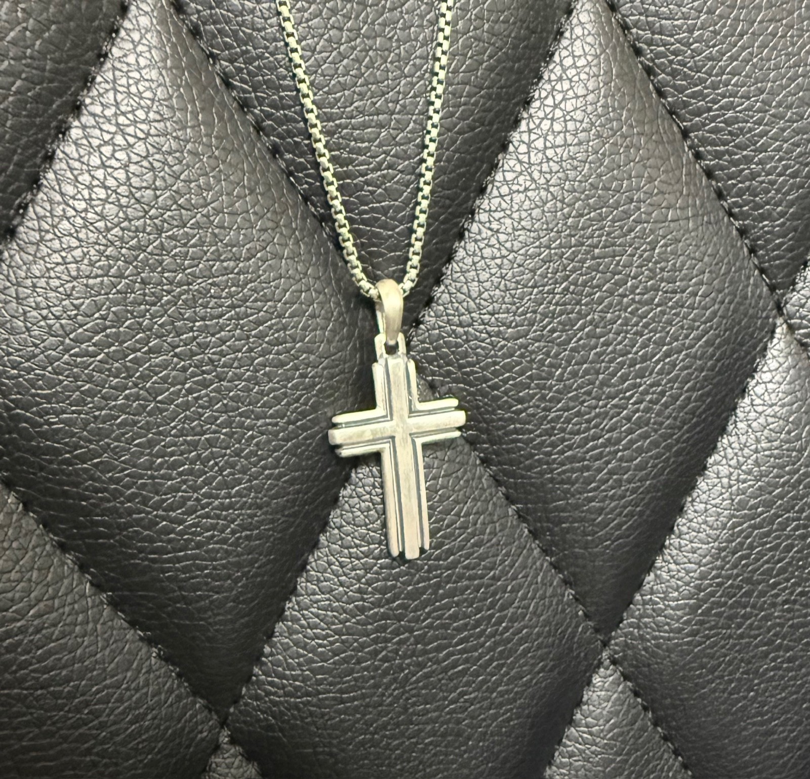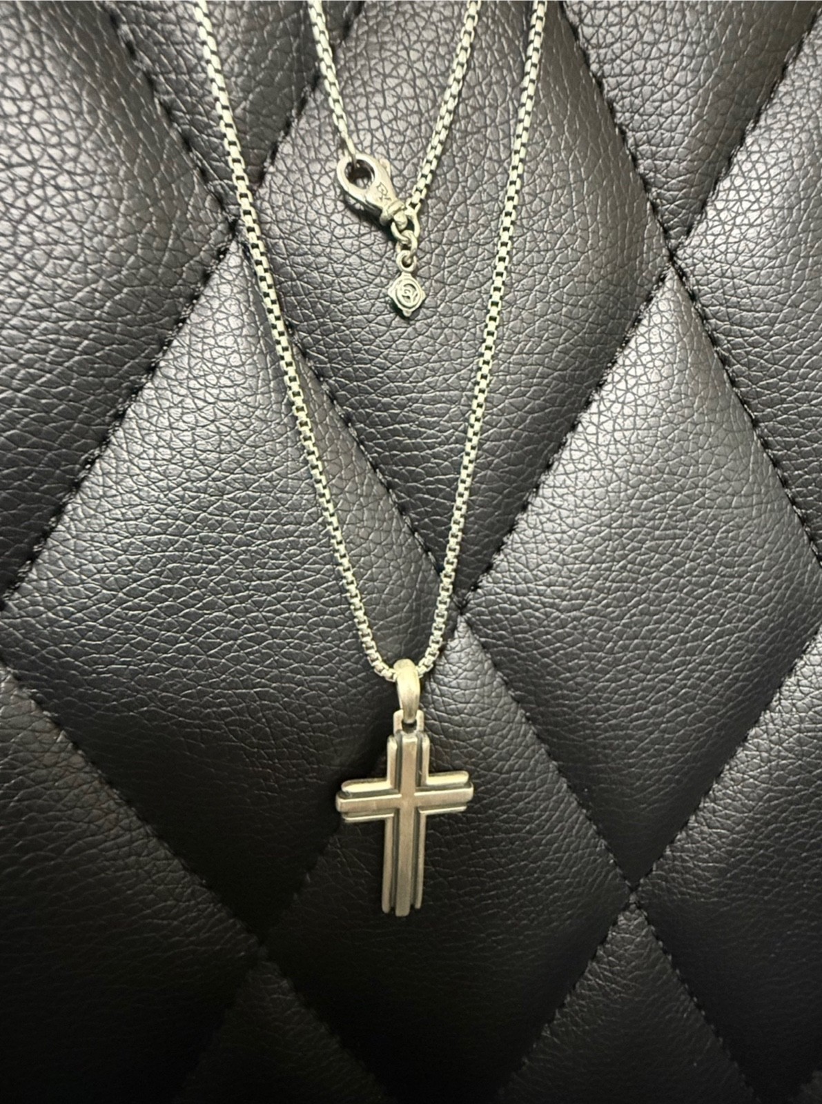 - David Yurman .925 Sterling Silver Religious Deco Cross Pendant Men's & Chain 26"