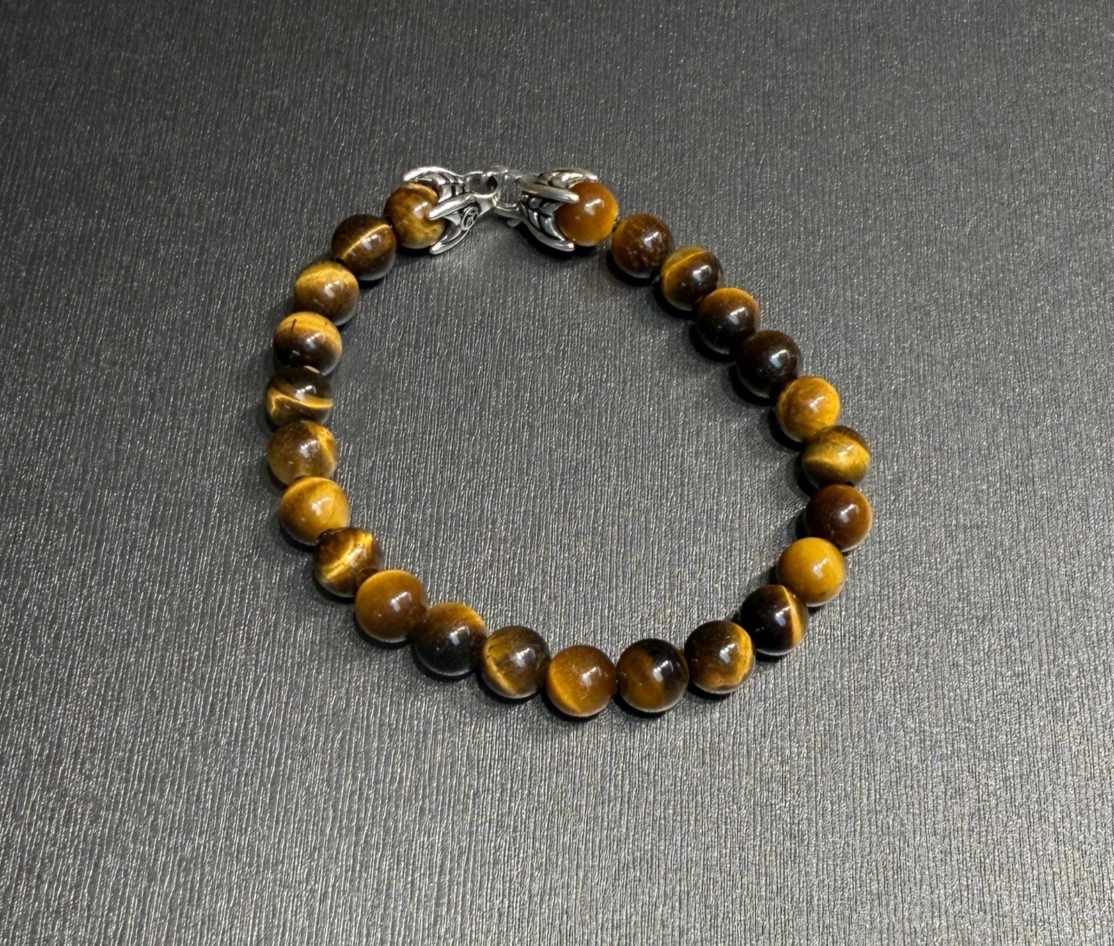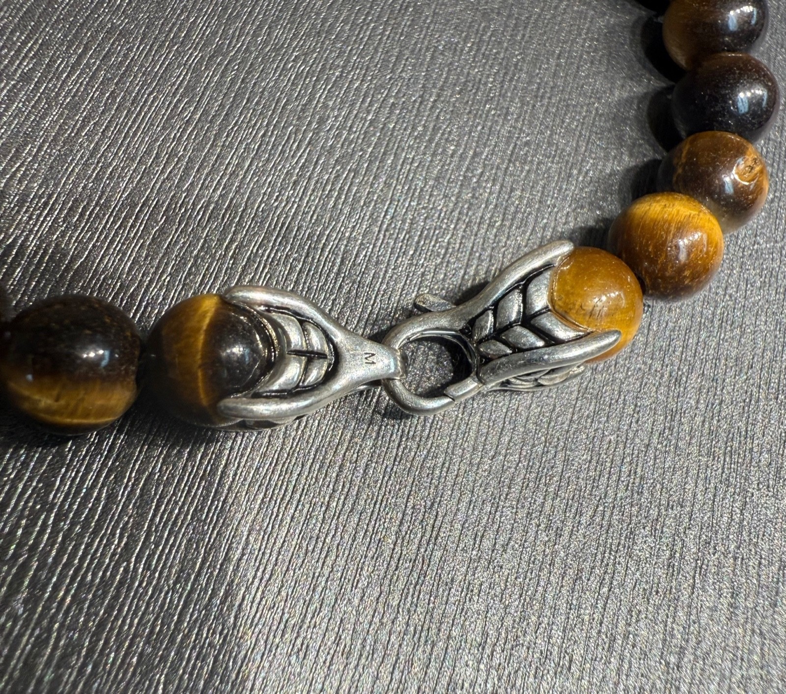 - David Yurman 925 Sterling Silver Spiritual Bead Tiger's Eye Ball Men Bracelet 8"