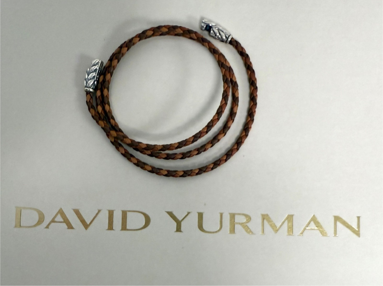 - David Yurman 925 Sterling Silver Triple Wrap Mix Brown Leather Bracelet Small