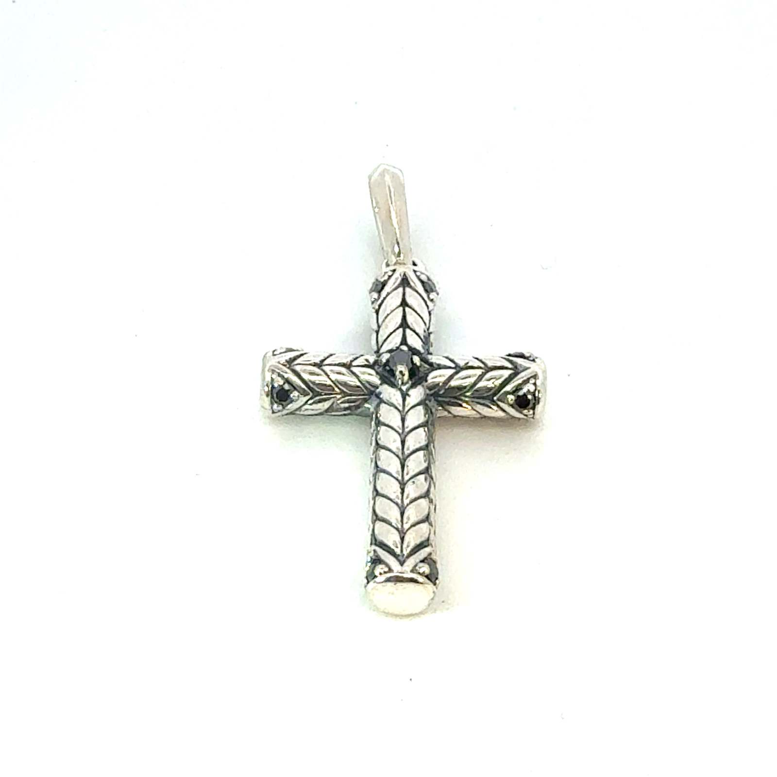 - David Yurman Black Diamond Cross Pendant Sterling Silver Estate DY656